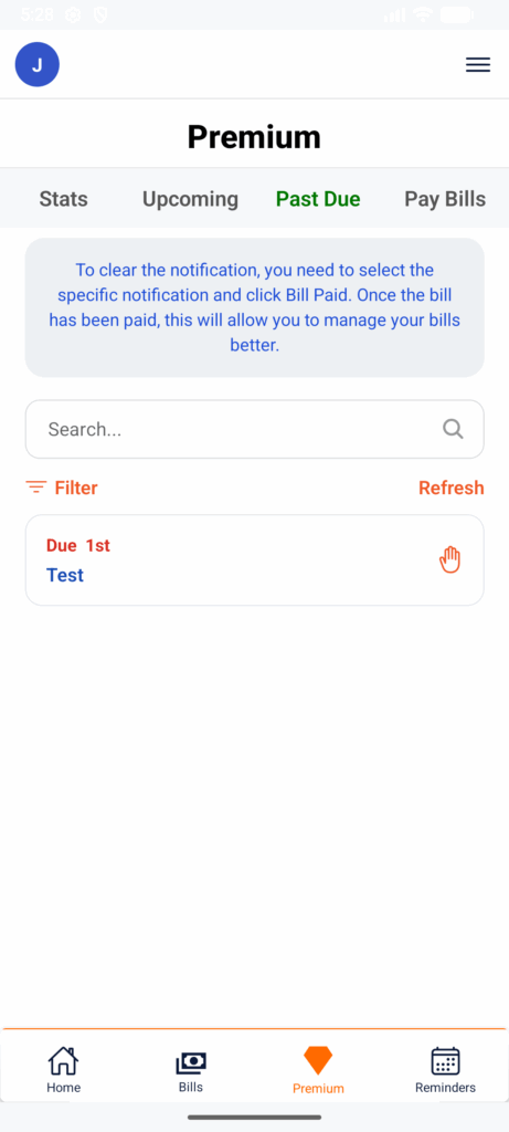 -For the past due page , you can see your past due bills. To remove it, you can click on the past due bill and mentioned that the bill was paid and the app will automatically clear it.